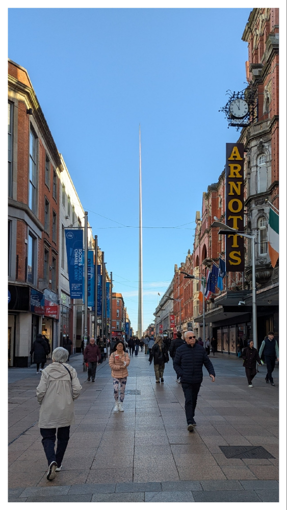 Gegen zehn müssen wir das Apartement verlassen, das gibt uns genug Zeit, gemütlich zusammenzupacken und zu Frühstücken, bevor wir gehen. Viel haben wir nicht vor heute, wir wollen grob in die Ecke rund um eines von Dublins Wahrzeichen, dem Spire. Dort gibt es einen Spieleladen (der Sohn pflegt spielerische Hobbies), die verschiedensten Andenkenläden, die Busse in Richtung Flughafen fahren dort ab und ich erhoffe mir irgendwo ein Irisches Frühstück, das ich gerne probieren würde. Glücklicherweise spielt an diesem letzten Tag das Wetter mit, es ist sonnig und wir können etwas bummeln auf den Wegen zwischen unseren Stationen.