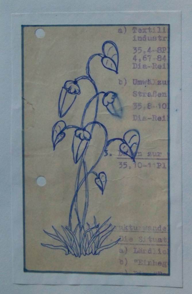 Vorrangig geht es hier nicht um das Bildchen (obwohl ich es gut genug fand, um es später zur Grundlage eines Linoldrucks zu machen), sondern um das Papier, auf dem es gekritzelt ist. Nämlich …