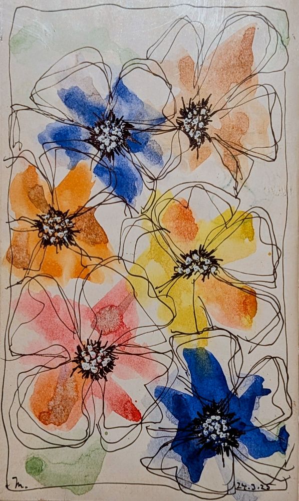 Im Moment ist es gar nicht so einfach, an der Idee, jeden Tag eine kreative Kleinigkeit zu schaffen, dranzubleiben. Aber noch gelingt es. Und manchmal ist es sogar besser, wenn ich mir weniger Mühe mache oder weniger will. Das nebenstehende Bild ist in weniger als einer Viertelstunde entstanden und gibt mir mehr, als manche deutlich aufwändigere Zeichnung.