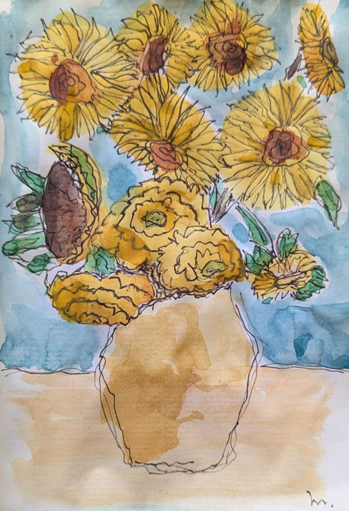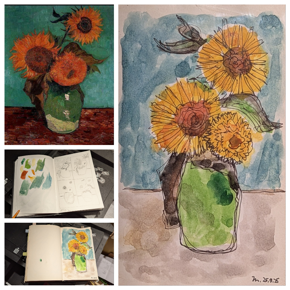 25165 – Van Gogh und ich Van Gogh an seinen Bruder Leo im August 1888: Update (3.10.25): Versucht, ein weiteres der Sonnenblumenbilder mit meinen Mitteln und Fähigkeiten umzusetzen.