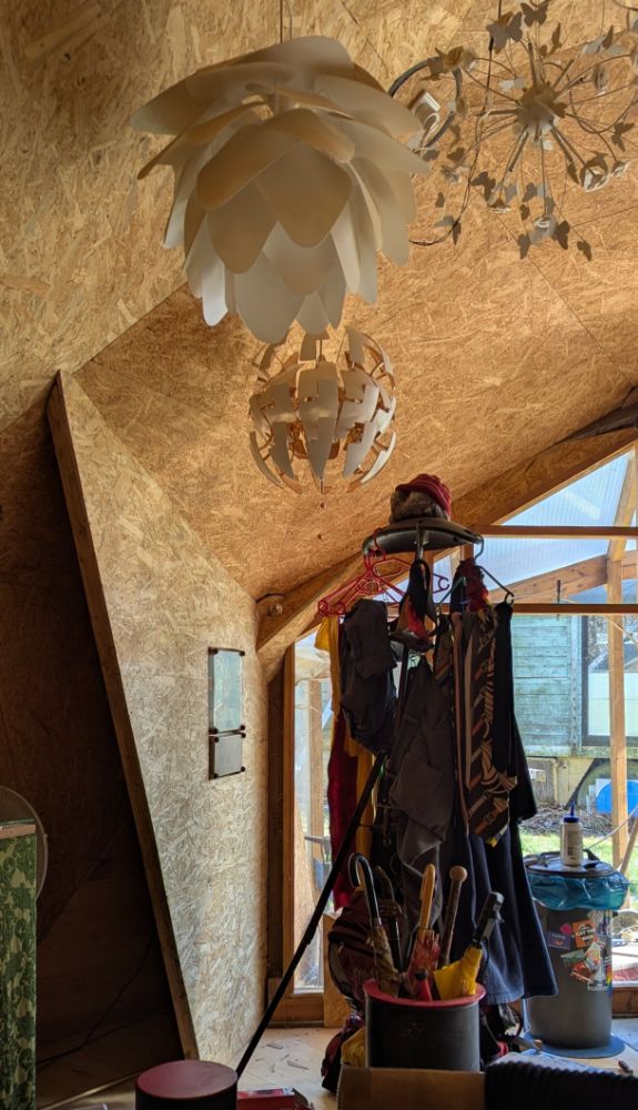 Heute ist die linke Kammerwand „fertig“ geworden und damit ist ein Meilenstein erreicht, der größer kaum sein könnte. Mit dieser Kammer ist der letzte Stauraum erstellt, es kann nun ans Einräumen gehen. Denn – auch wenn ich nun schon über fünf Monate im Dome wohne – noch immer sind die Vitrine, die Kommode, die Apotherkerschränke, selbst der Küchenschrank noch nicht eingeräumt. Es gibt vorsichtige Anfänge, dort, wo es eindeutig ist. Oder dort, wo es für den Alltagsvollzug unabdingbar ist. Aber zu drei Viertel sind die Schränke und Stauräume noch leer.