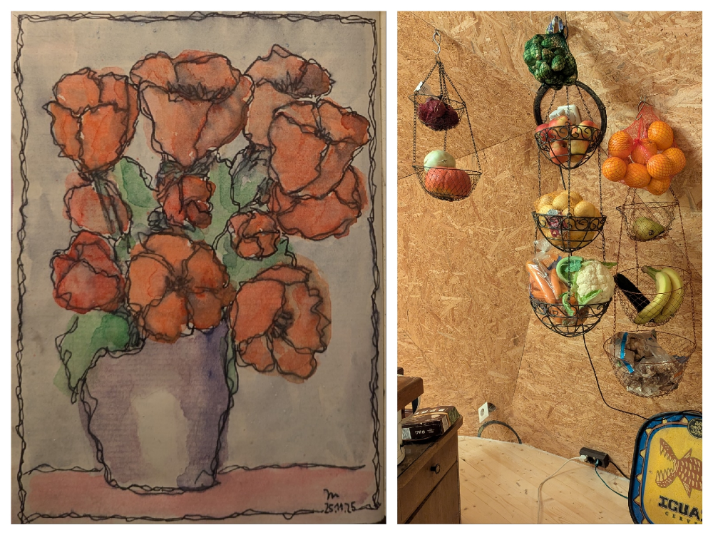 Vormittags die Zeichnung von gestern Abend nachaquarelliert, nachmittags Lebensmittel eingekauft, für einen Tag reicht das.