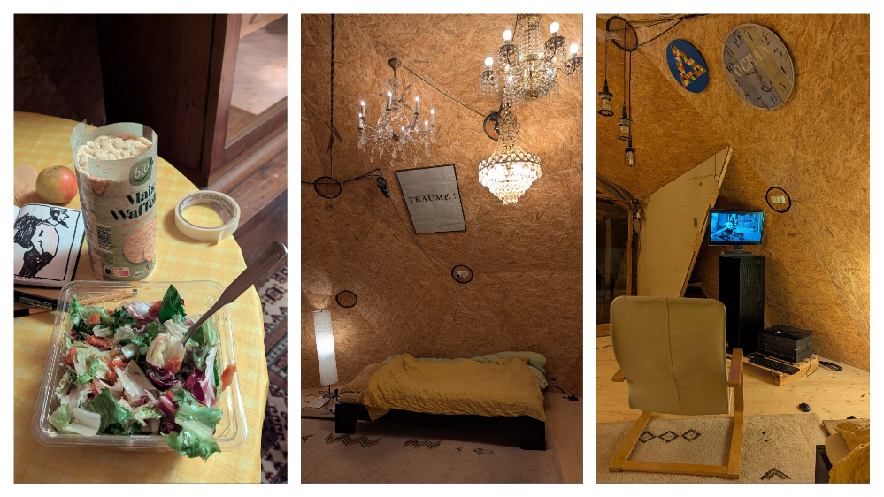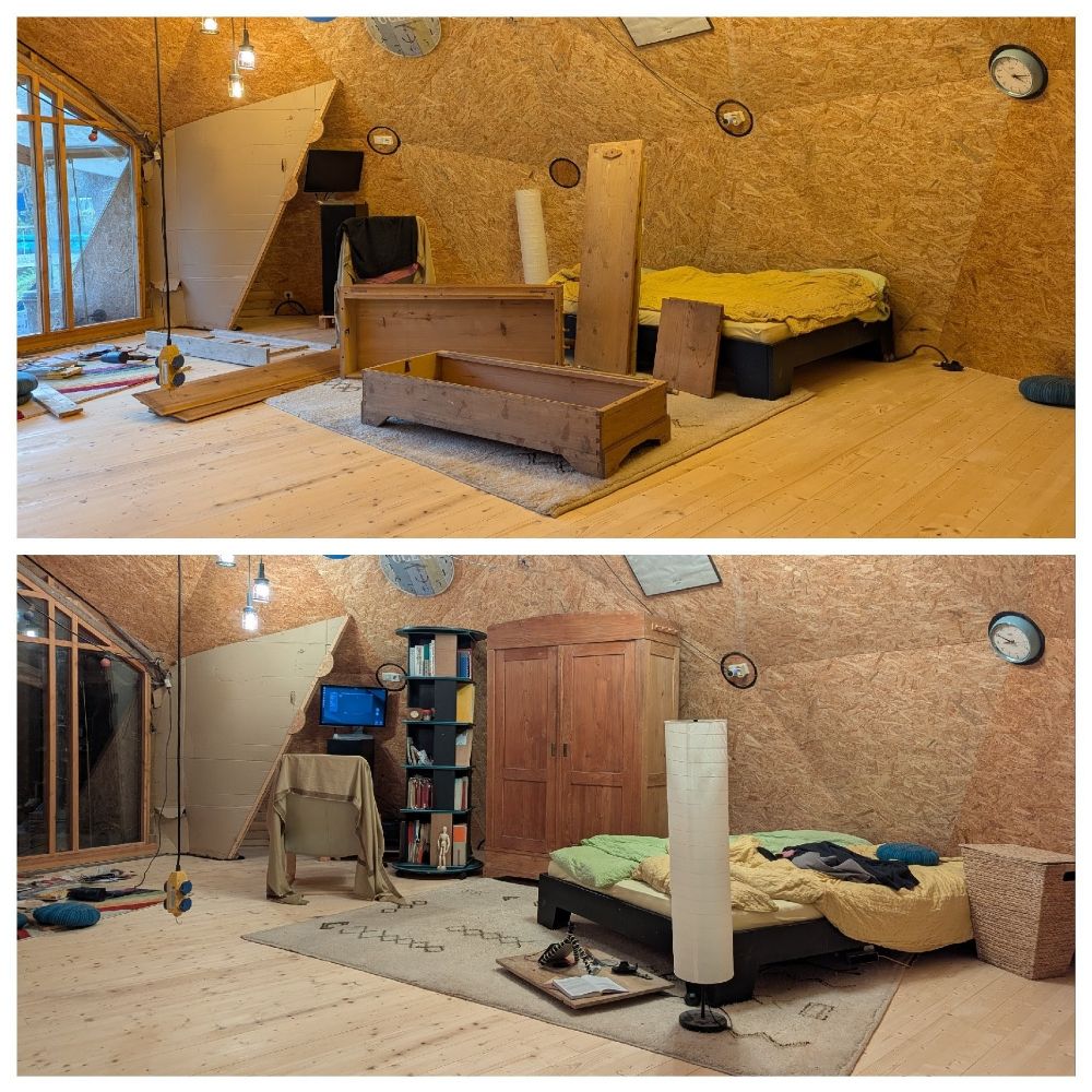 Heute hat es einrichtungsmäßig einen Ruck gegeben. A. war zu Besuch, eigentlich hatten wir eine kleine gemeinsame Bastelei im Kopf, aber dann haben wir uns spontan umentschieden und die Küchenzeile aus dem Wagen in den Dome geholt. Schreibt sich schnell, war aber eine nachmittagsfüllende Aufgabe. Als wir am frühen Abend dann am Tisch saßen und uns anschauten, was wir getan hatten, waren wir zufrieden.