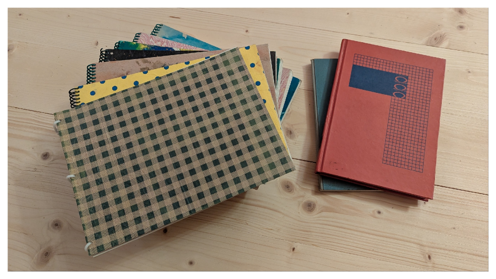 Fast vergessen, nach dem ich meine kleine Bastelarbeit beendet hatte, habe ich noch etwas „gebuchhaltert“. Zu den Skizzen-Blocks gehören zwei Kladden, in denen ich zu jedem Mandala das Datum und anderes, was mir gerade bemerkenswert dazu erscheint, vermerke. Das ist manchmal fast nichts und manchmal eine kleine Legende, oft genug wenigstens eine Assoziation. Zu den letzten elf Mandalas fehlten diese Einträge und nach so langer Zeit ist da auch nichts mehr zu erinnern. Dennoch, auch „buchhalterisch“ bin ich jetzt aktuell, sogar die ganz aktuellen Mandalas – in diesem Sommer sind drei hinzugekommen – haben jetzt ihren Eintrag.