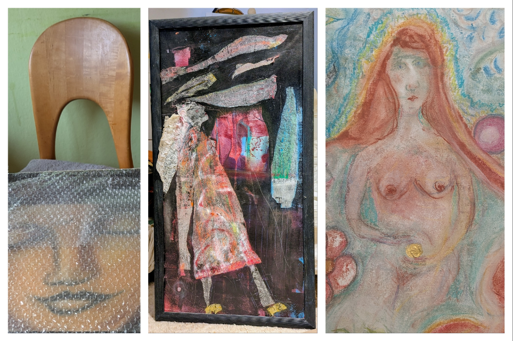 Gestern und heute habe ich Gi. bei den Vorbereitungen für ihre Ausstellung geholfen. Da Gi. eine Sehbehinderung hat, war ich bei allen Tätigkeiten gefragt, die klare Sicht erfordern. Und auch bei einigen anderen. Ich habe also zwei Tage Bilder gerahmt, gereinigt, verpackt, positioniert, auf Hintergründe geklebt oder von ihnen abgelöst, Aufhängungen angebracht oder improvisiert, zwischendrin auch mal bei der Auswahl, nun, vielleicht nicht beraten, aber doch „Meinung gehabt“. Dabei war es interessant und anregend, Bilder aus über dreißig Jahren Schaffenszeit anzuschauen und zu manchen von ihnen auch die Geschichte zu erfahren. Hat Spaß gemacht und das Essen war gut, so soll das sein!