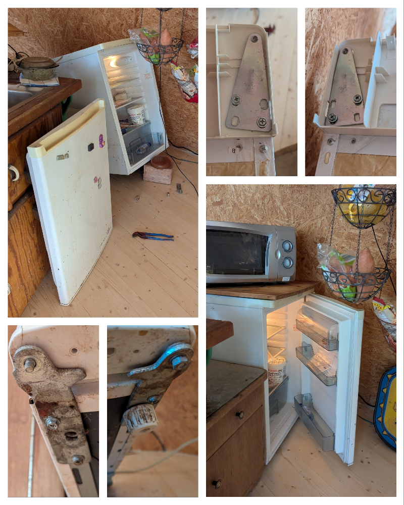 Wenigstens eine kleine Aktion gab es heute, ich habe den Anschlag der Kühlschranktür verändert, nachdem ich ihn vorgestern aus dem Wagen in den Dome geholt habe. Mit der Zeit wurde es doch etwas lästig, immer zum Wagen zu laufen, wenn ich etwas aus dem Kühlschran brauchte.