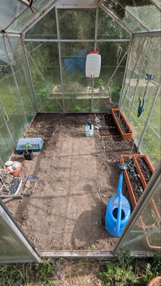 Nachbarin M. hat das Gewächshaus adoptiert und nutzt es intensiv. Sie gießt morgens, ich bin der Abendgießer. Mir passt das Arrangement sehr gut, die letzten zwei, möglicherweise drei Jahre ist darin nichts passiert, weil ich regelmäßig die Anzuchtphase verpasst habe. In all den Jahren davor hat immer A. die Anzucht erledigt, mit dem regelmäßigen Gießen komme ich dann klar. Aber im Februar oder März daran denken, dass ich im April Pflanzen ins Gewächshaus setzen möchte, das bringt mich in die Überforderung.